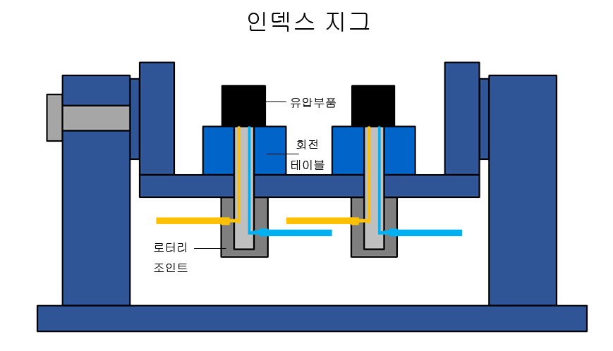 인스톨타입 로터리조인트는 인덱스 회전테이블 아래에 조립되며 작은 로터 외경으로 인해 협소한 공간에 설치가 가능합니다.