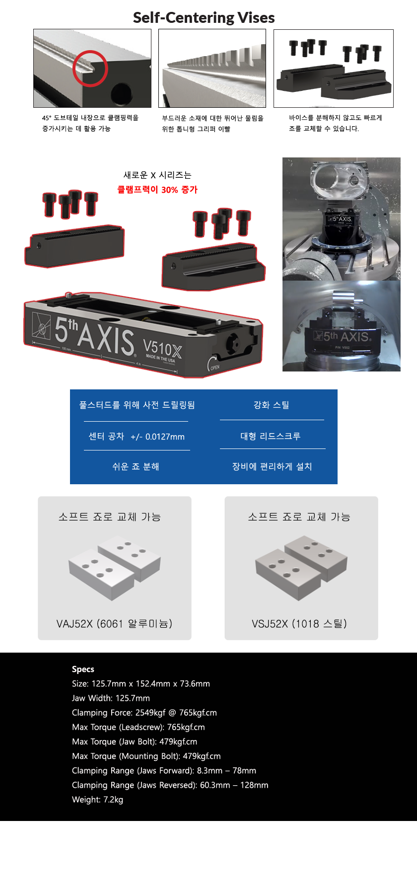 V562X는 제품 라인(V562M)에서 가장 많이 팔리는 셀프 센터링 바이스의 업데이트된 버전입니다. 새로운 모델은 업데이트된 4개 죠 장착 볼트 키드 죠 및 트럭으로 인해 클램핑 힘이 30% 더 높습니다.